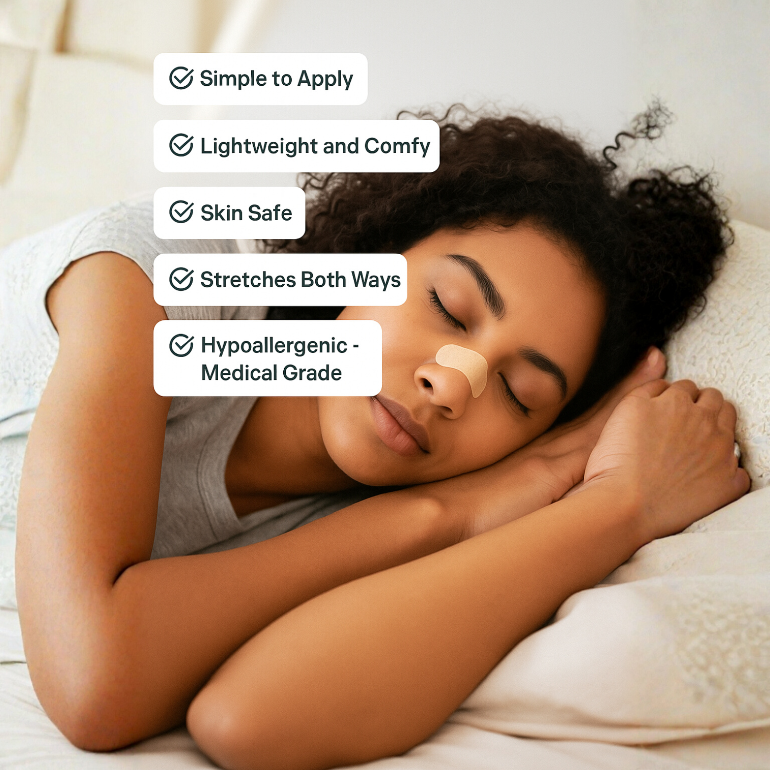 Nose strips help promote nasal breathing, which can contribute to better sleep and less snoring by improving airflow and keeping your nasal passages open.